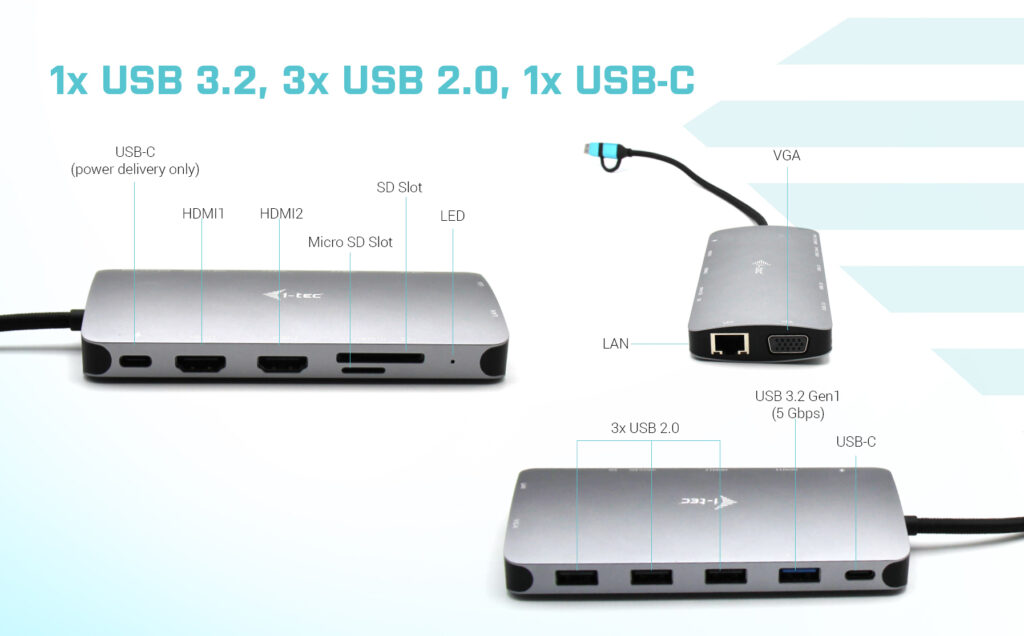 i-tec USB 3.0/USB-C/TB3 3x Display Metal Nano Dock with LAN, PD 100W