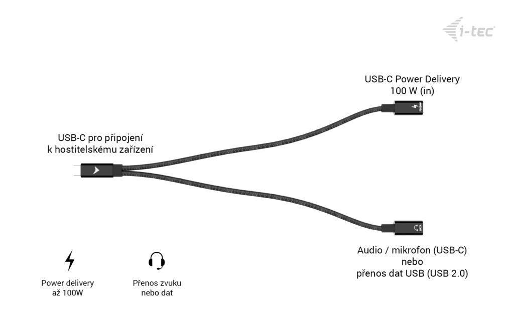 i-tec USB-C Cable Splitter Audio/Data, Power Delivery 100W