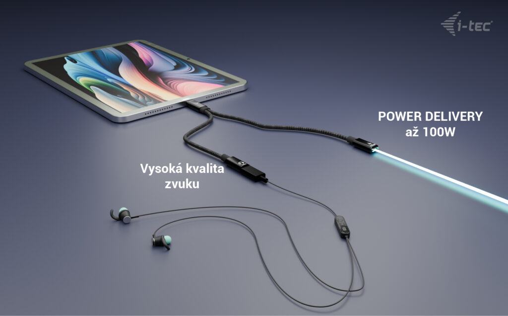 • USB-C řešení 2 v 1 – Umožňuje současné nabíjení a přenos dat (480 Mbps) nebo připojení audio/mikrofonního zařízení přes jediný USB-C port.