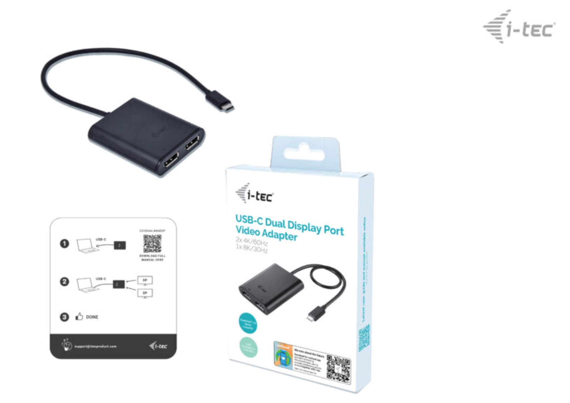 i-tec USB-C Dual 4K/60Hz (single 8K/30Hz) DP Video Adapter