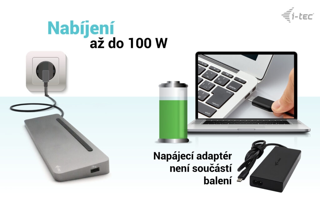 • Poskytuje až 100W Power Delivery pro kompatibilní notebooky a tablety s rozhraním USB-C a Thunderbolt. (Hostitelské zařízení musí podporovat USB-C Power Delivery).