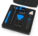 Sada na opravu elektroniky nářadí pro základní opravy a demontáž elektroniky, kompaktní balení šroubováku, bitů, pinzet, páčidel. Sada je uložena v praktickém plastovém pouzdře, ve kterém se skrývá nespočet potřebného nářadí a jiných pomůcek, jež vám ulehčí opravy. Kromě standardních nebo torx bitů je v setu pinzeta, plastové karty, páčidlo či speciální přísavka pro snadnou demontáž displeje, případně zachycení jiných důležitých částí. Vše je vyrobeno z vysoce kvalitního a odolného materiálu, který zajistí dlouhodobou životnost a spolehlivost. Díky tomuto setu se stanete opravdovými profesionály v oboru.