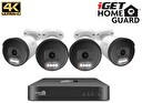 Kamerový systém iGET HOMEGUARD HGNVK88504 s rozlišením Ultra HD 4K (3840 x 2160), obousměrným přenosem zvuku, barevným nočním viděním, sirénami, PoE napájením a SMART detekcí pohybu. 8-kanálový 4K rekordér NVR s PoE napájením + 4x HGNHK938CAM 4K (8MPx) PoE barevná venkovní kamera s LED svícením a výstražnými LED, myš, kabeláž, pozice pro 1x HDD SATA až 10 TB, podpora ONVIF ver.2.6, Google Assistant, Amazon Alexa.