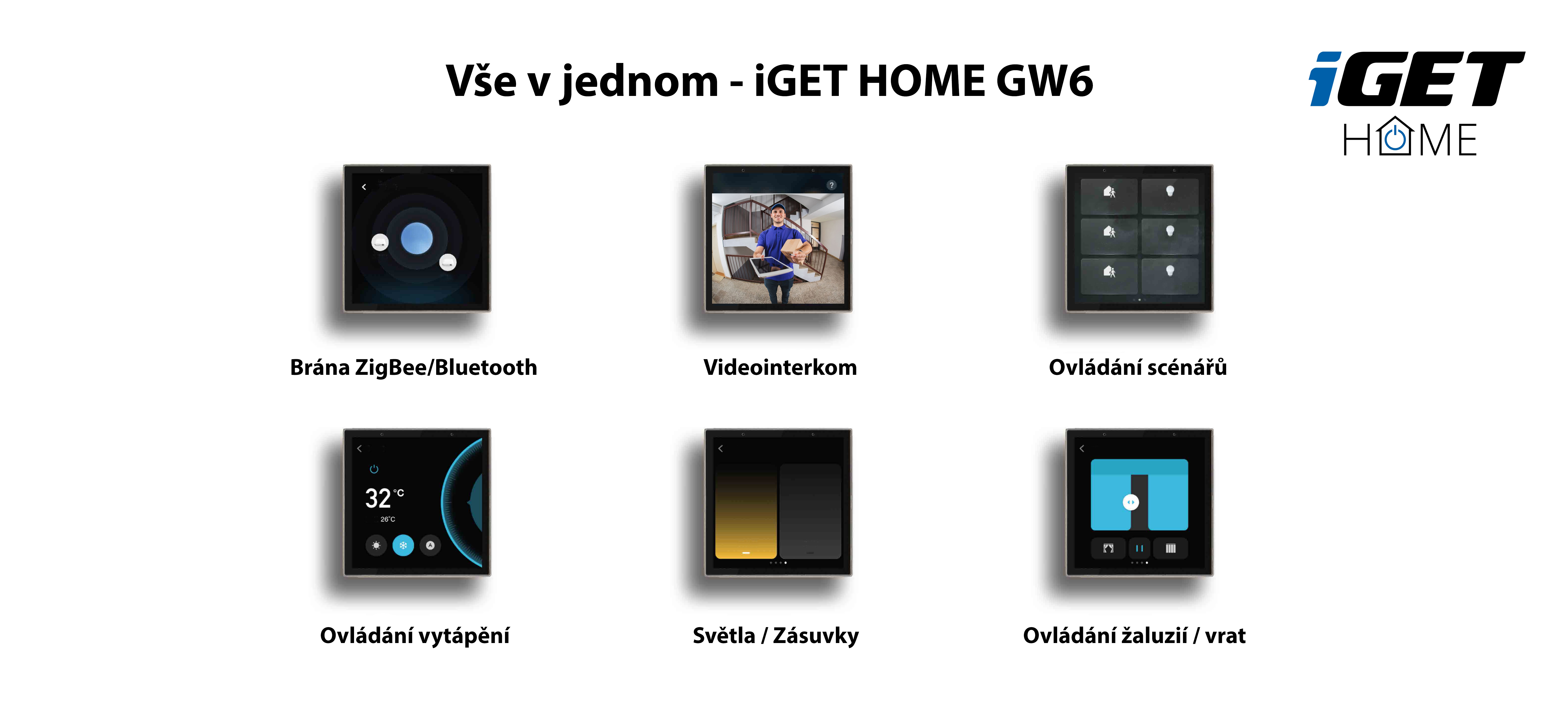 iGET HOME Gateway GW6 Mějte svůj domov pod kontrolou s inteligentní bránou chytré domácnosti iGET HOME Gateway GW6. Tato brána / gateway / hub / bridge obsahující dotykový displej podporuje ZigBee verze 3.0 a všechny předchozí, Bluetooth, Wi-Fi připojení 802.11 b/g/n, a další zařízení jako např. Philips HUE, Tuya, Lidl apod. Rozumí si s Androidem i iOS, přímo na displeji můžete sledovat a dotykově ovládat veškeré termohlavice, osvětlení, kamery, videozvonky a další zařízení které jsou připojené k vaší chytré domácnosti. Manuál i aplikace iGET HOME jsou kompletně v českém, slovenském, polském, maďarském a anglickém jazyce. Díky podpoře nejnovějšího protokolu ZigBee 3.0 máte jistotu maximální stability kterou podporuje. Navíc aplikace obsahuje IP kamery, zásuvky, vysavače, a dalších více než 300 typů univerzálního příslušenství vč. iGET HOME. Upravit nastavení a ovládat vaši domácnost tak můžete vzdáleně odkudkoliv. Brána Gateway GW6 vám umožní ovládat spoustu dalších logických a automatických funkcí, např. pomocí jednoho tlačítka nastavit teplotu pro veškeré místnosti, vypnout spotřebiče nebo osvětlení, komunikovat s návštěvou pomocí videa a zvuku z videozvonku nebo kamer apod. Samozřejmostí je spárování s funkcemi z dalších zařízení které jsou již připojeny. Jak to funguje Svoji chytrou domácnost kompletně spravujete pomocí mobilního telefonu a aplikace iGET HOME. Po zapojení GW6 stačí pouze oskenovat QR kód na displeji a celé vaše nastavení z aplikace v mobilním telefonu se přenese také do GW6. Jednoduše pak můžete jednotlivá zařízení ovládat a sledovat jako na mobilním telefonu. Způsob instalace GW6 jednoduše nainstalujete např. do krabice po předchozím vypínači osvětlení. Pouze je nutné mít v krabici 1x Fázový vodič / Line(černý nebo hnědý) a Nulový vodič / Null (modrý). Tyto přímo připojíte do GW6 a uchytíte ji do krabice jako standartní vypínač. KK internetu se pak GW6 připojí pomocí Wi-Fi připojení a takto komunikuje se serverem. Aplikace iGET HOME Pro ovládání je určena aplikace volně dostupná na Google Play a iOS marketu. Aplikace je zcela zdarma po celou dobu. Pomocí této aplikace je možné provést přehledně kompletní nastavení, přidávat senzory, ovládat IP kamery, řízené zásuvky apod. Aplikace je v českém, slovenském, polském, maďarském, anglickém jazyce a mnoha dalších. Jedna aplikace tak sdružuje nastavení a ovládání zařízení připojených k bráně, IP kamer, smart tlačítek, řízených zásuvek, atd. all-in-one. Bezdrátový přenos a kompatibilita se senzory a zařízeními ZigBee a Bluetooth GW6 neslouží pouze jako ovládací panel ale také jako brána pro senzory a zařízení s protokolem ZigBee 3.0 a Bluetooth. Sdružuje se tak více zařízení do jednoho. Toto velmi usnadňuje montáž, a celá komunikace je jednotně řízena. Veškeré příslušenství a další produkty ZigBee jsou s touto bránou kompatibilní. Brána podporuje také zařízení jako Philips Hue, Tuya, Lidl apod. Automatická aktualizace firmware GW6 si automaticky kontroluje dostupnost nejnovějšího firmware na serveru, buď jej nainstaluje automaticky nebo po potvrzení uživatele. Aktualizace je velmi rychlá, trvá cca 3 minuty. Díky aktualizaci dochází k přidávání nových funkcí, úpravě bezpečnostních pravidel na vyšší verzi, a další. Hlavní parametry: - Ovládací panel s 4" HD IPS dotykovým displejem, mikrofonem s redukcí šumu, reproduktorem a senzorem světla. - Hloubka krabice ve stěně pro montáž min.26 mm. - Inteligentní brána / gateway / hub / bridge ZigBee 3.0 (802.15.4), Bluetooth 4.2, připojení k Internetu pomocí Wi-Fi 802.11b/g/n 150 Mb/s. - Ovládání veškerých chytrých tlačítek, vypínačů, zásuvek, bran, garážových vrat, žaluzií a dalších zařízení. - Nastavení teplot pro vytápění (termohlavice, relé) a také pro klimatizace. - Ovládání celého osvětlení, pro každé nastavení barev, jasu apod. - Funkce Interkom - návštěva zazvoní na videozvonek (DS1) a GW6 zobrazí celého video se zvukem a přímo komunikujete. - Funkce pro kamery - zobrazení online streamu z kamer včetně zvuku, např. z CS1, CS6, CS9, N4C4, a přímokomunikujete. - Ovládání scénářů - scénáře nastavené v telefonu je možné aktivovat pomocí jednoho tlačítka. - V jedné aplikaci iGET HOME rovněž ovládání kamer, řízených zásuvek, termohlavic, vysavačů, osvětlení a další, komunikuje s dalšími modely univerzálního bezdrátového ZigBee příslušenství. - Aplikace pro celkové řízení a nastavení systému je dostupná pro Android i iOS a je k dispozici v češtině, slovenštině, polštině, angličtině a maďarštině a dalších. - Zabezpečovací logické funkce – je možné nastavit logické Smart funkce, v návaznosti na dané senzory atd. - Elegantní design spojený s jednoduchým ovládáním. - Plně kompatibilní s žárovkami Philips Hue a dalšími platformami jako Tuya, Smartlife, Lidl a další. Specifikace centrální jednotky: - Napájení: ze sítě 100 - 240 V AC, 50/60 Hz - Velikost a hmotnost: 86 x 86 x 35 mm celkem s částí do krabice, 86 x 86 x 10 mm pouze viditelná část, 210g - Připojení k síti: Wi-Fi 802.11 b/g/n, 2.4 GHz - Komunikace se senzory a zařízeními: ZigBee 3.0 (802.15.4), Bluetooth 4.2 - Okolní vlhkost: do 90% bez kondenzace - Pracovní teplota: 0°C až +40°C Obsah balení: 1x HOME Gateway GW6 – centrální ovládací jednotka 1x sada pro uchycení 1x UIG - Uživatelský manuál v českém, slovenském, polském, anglickém a maďarském jazyce