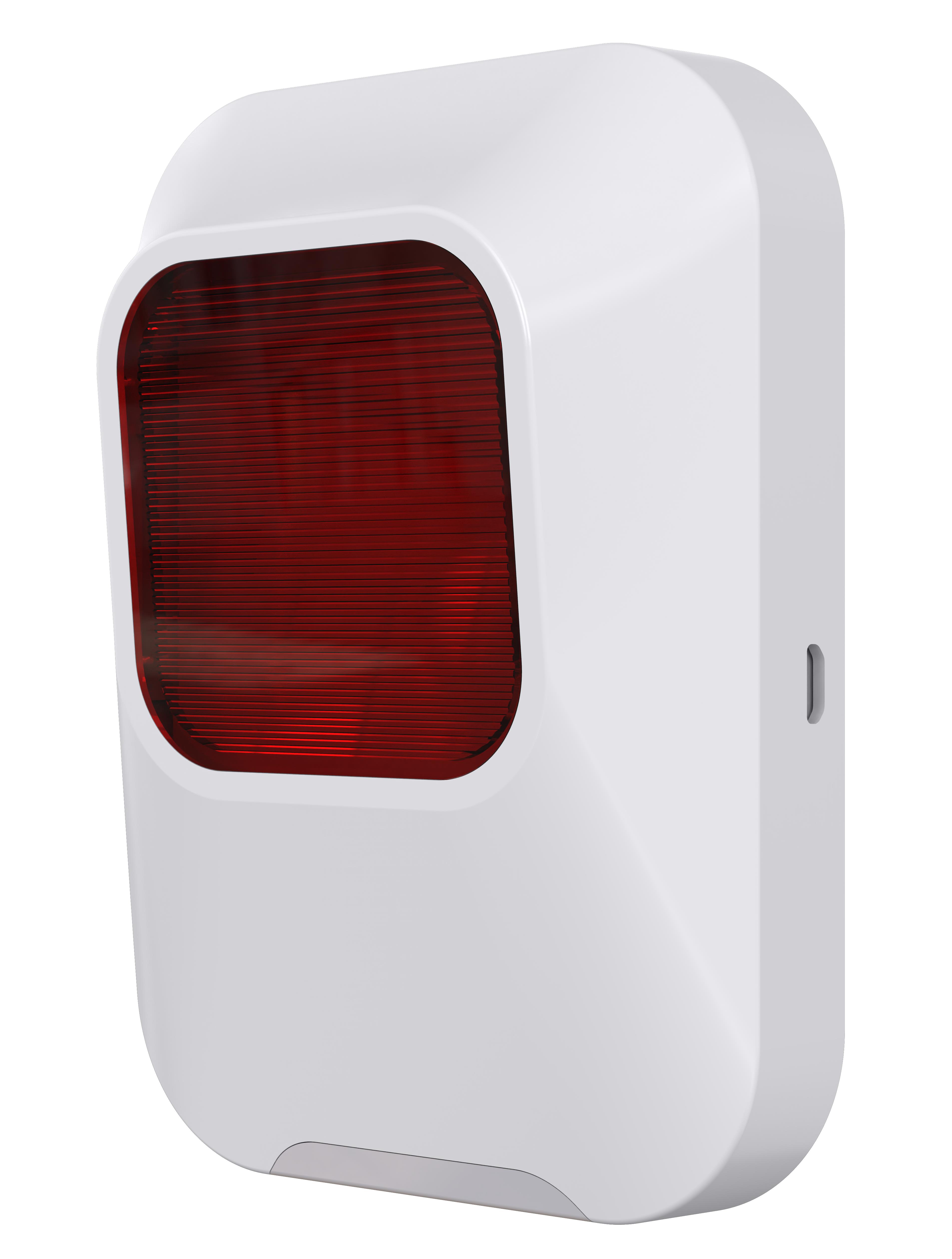 Siréna je napájená z baterií 3ks AA nebo z microUSB portu. Balení obsahuje baterie a také USB-microSUB kabel. Vzdálenost umístění od hlavní jednotky až 1 km. Indikace stavu ve kterém se alarm nachází díky barevnému LED pásku (červená, modrá zelená). Při slabé baterii informuje alarm pomocí notifikace aplikace nebo SMS zprávy.