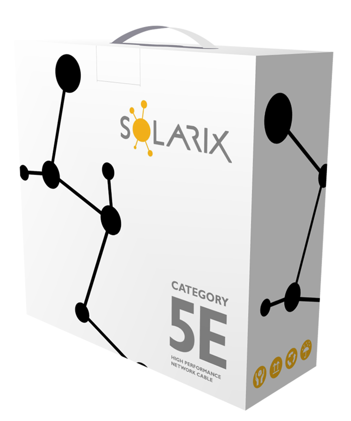 Instalační kabel Solarix s označením SXKD-5E-UTP-PE je spolehlivý venkovní nestíněný kabel kategorie 5E, který je určený pro provoz ethernetových protokolů, včetně 2.5GBASE-T a 5GBASE-T*. Konstrukce kabelu je U/UTP, typ pláště UV stabilní PE s třídou reakce na oheň Fca a stupněm krytí IP67. Vodiče kabelu jsou vyrobeny z kvalitního měděného drátu s čistotou mědi 99,97 %. Kabel bez problémů splňuje požadavky z mezinárodních standardů ISO/IEC 11801, EN 50173 a ANSI/TIA 568.2-D. Stejně jako ostatní kabely Solarix, je i kabel SXKD-5E-UTP-PE značen metráží po 1 m v rozsahu od 0 do 100 m. Kabel je dodáván ve vysoce odolném třívrstvém leštěném kartónovém boxu (vždy barevně odlišeném podle typu kabelu), na kterém jsou uvedeny všechny nezbytné produktové informace, včetně čárových kódů, výrobní šarže, popisu a nejdůležitějších technických parametrů. Tento kabel není určen pro trvalé uložení do vody ani do země bez odpovídající řádné ochrany.