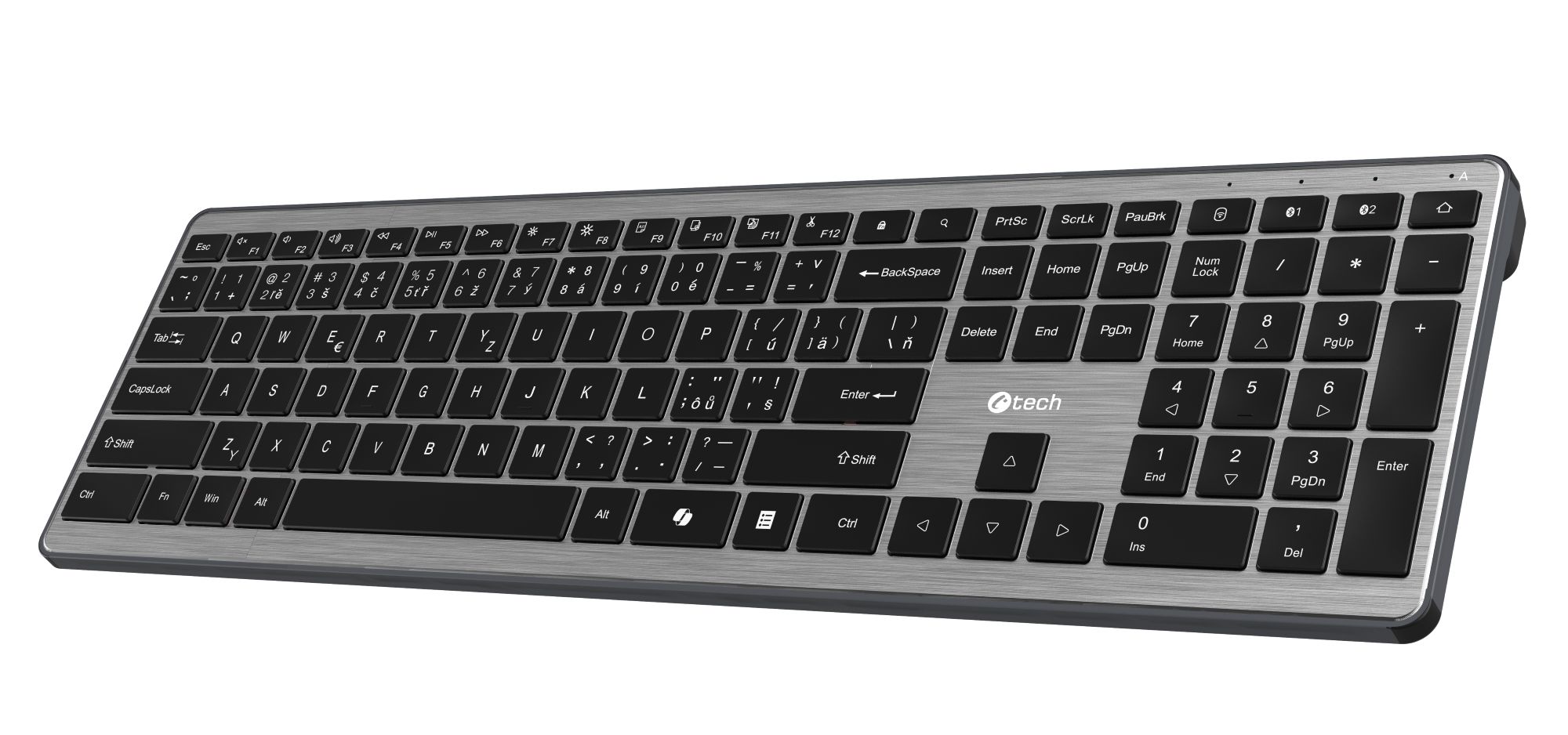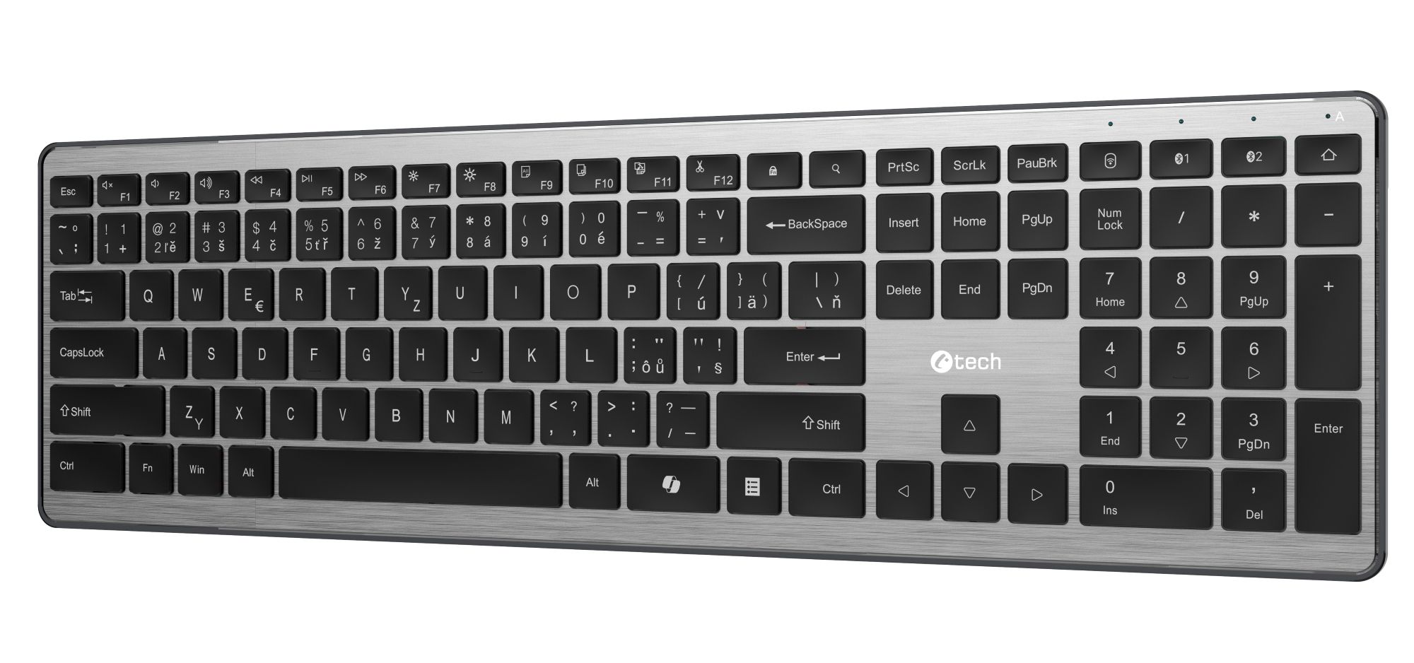 Prémiový charakter klávesnice podtrhuje kovový horní plech, který dodává zařízení vysokou pevnost, stabilitu a elegantní vzhled. Klávesnice se díky tomu neprohýbá a působí velmi solidním dojmem i při intenzivním používání.