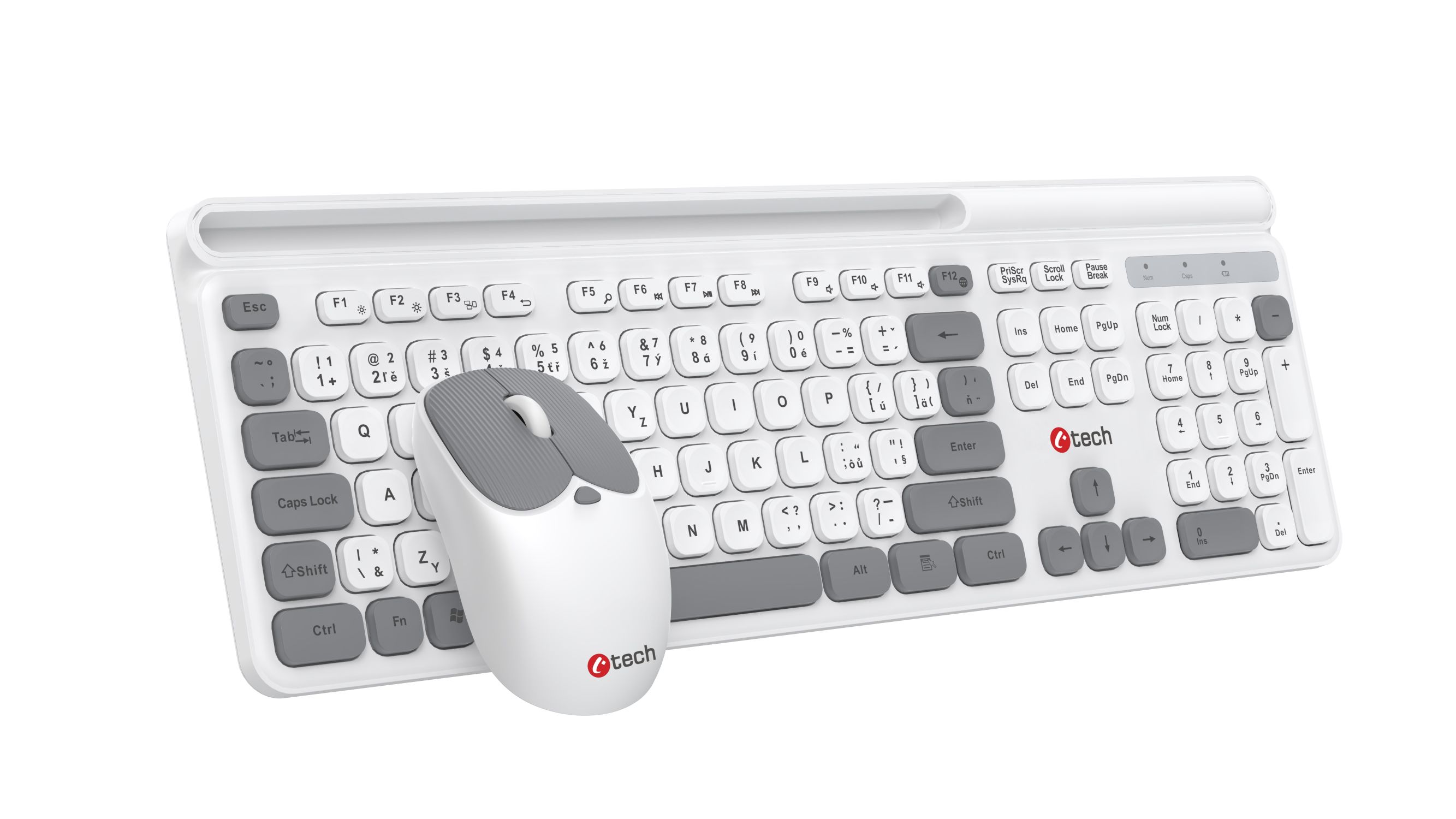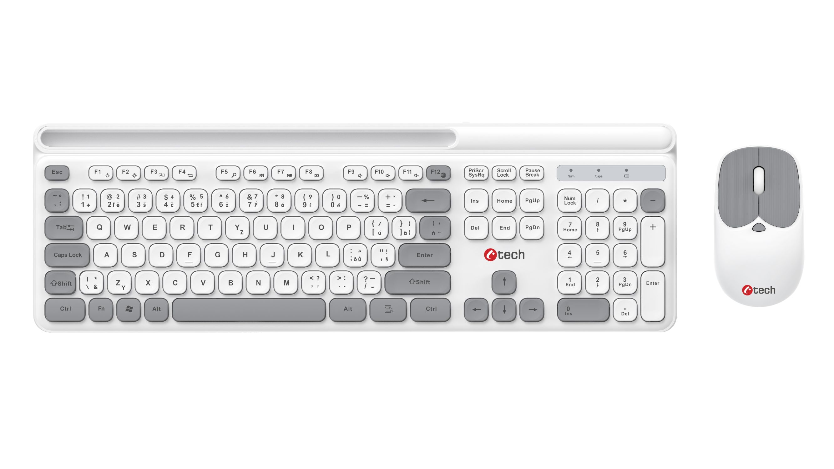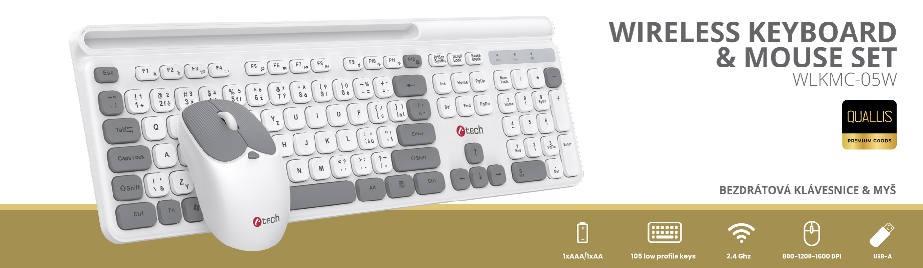 Klávesnice C-TECH Quallis WLKMC-05, bezdrátový combo set s myší, bílá, USB, CZ/SK