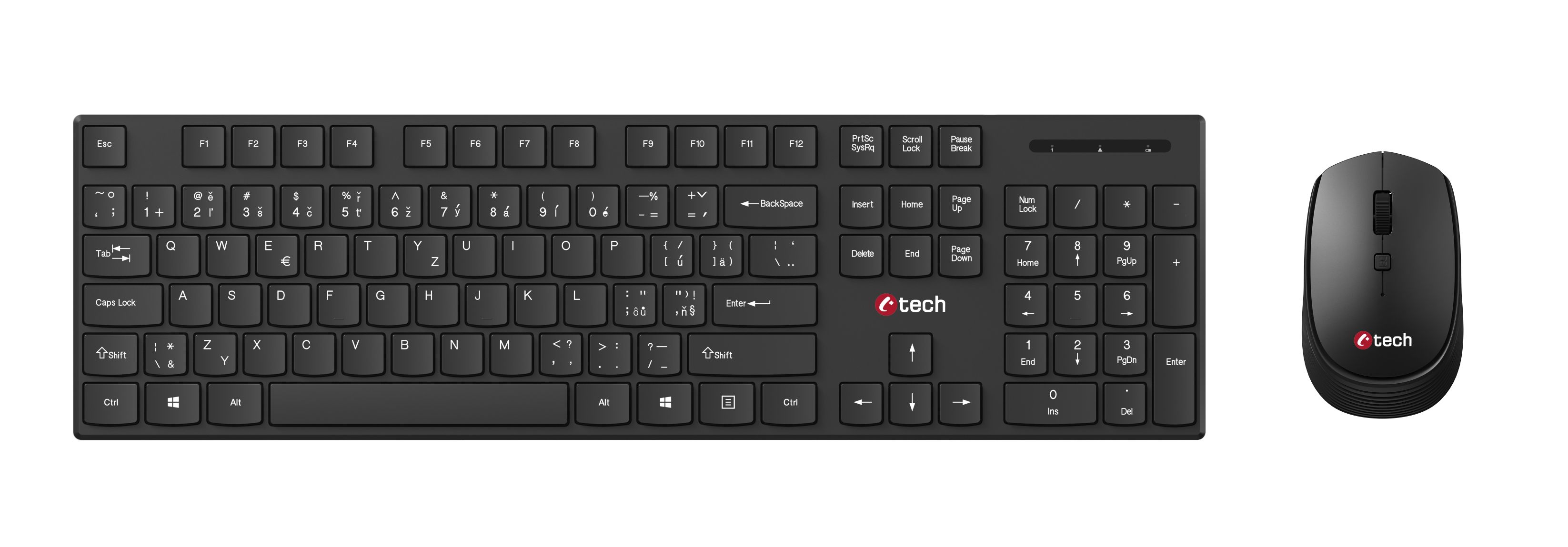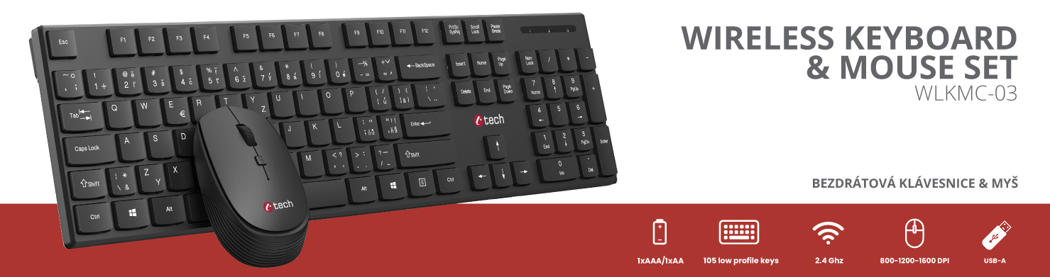 C-TECH WLKMC-03 Bezdrátový set klávesnice a myši pro pohodlnou a efektivní práci
