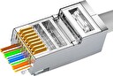 Koncovka FTP RJ-45EZ, balení 10ks, krimpovací, licna i drát Konektor RJ45 stíněný průchozí, na síťový kabel (lanko), konektor určený k nalisování (krimpování). 8 pozic 8 kontaktů