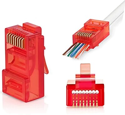 W-Star Konektor UTP RJ45EZ Cat5e100ks pozlacený, červená, pass through RJ45EZ5RS