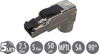 Konektor MPTL 90° RJ45 CAT5E STP samořezný SXRJ45-5E-STP-BK-SA-U