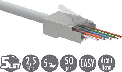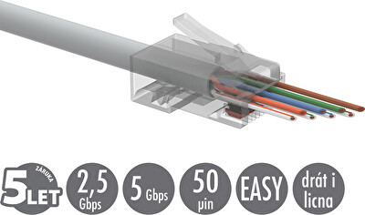 Univerzální EASY konektor RJ45 CAT5E UTP 8p8c na drát i licnu SXRJ45-5E-UTP-EASY 100ks