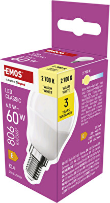 EMOS LED CLS MINI GLOBE 6,5W(60W) 806lm E14 WW