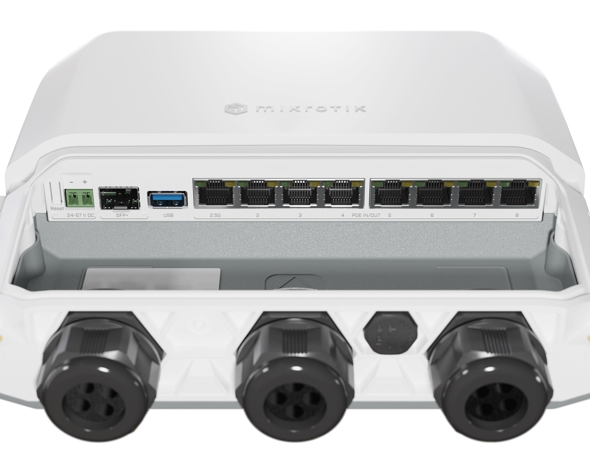 7x Gigabit Ethernet port, 1x 2,5 Gigabit Ethernet, 10G SFP+, 1GB RAM, 1GB NAND, moderní čtyřjádrový CPU, 9 možností napájení, krytí IP66