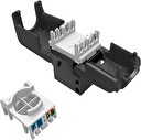 Samořezné keystony Solarix se vyznačují velmi jednoduchou instalací, ke které není nutné použít zařezávací nástroj. Tyto keystony bez problémů splňují parametry specifikované v mezinárodních standardech strukturované kabeláže ANSI/TIA 568, ISO/IEC 11801 a EN 50173 pro kategorii 6 a třídu vedení Class E, včetně všech nejnovějších dodatků. Keystony jsou osazeny 180° samořeznou svorkovnicí, která je označena barevným schématem podle typu zapojení, a to buď podle standardu T568A, nebo T568B. Do této svorkovnice je možné zařezat kabely typů drát s vodiči o velikosti AWG 26 – 22. Standardní barva nestíněných samořezných keystonů Solarix je černá, u stíněné verze je tělo modulu opatřeno stříbrnou kovovou částí. Díky svým kompaktním rozměrům jsou tyto samořezné keystony kompatibilní s modulárními zásuvkami většiny výrobců (např. ABB, Schneider, Legrand, Moeller, Hager, Obzor atd.). Tuto kompatibilitu si můžete ověřit v tabulce kompatibility, která se nachází v záložce "Odkazy".