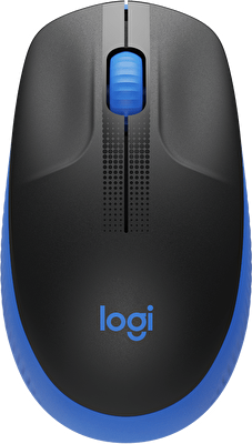 Logitech M190/Kancelářská/Optická/1 000 DPI/Bezdrátová USB/Černá-modrá