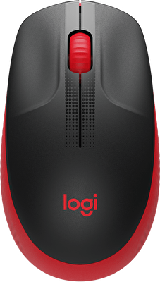 Logitech M190/Kancelářská/Optická/1 000 DPI/Bezdrátová USB/Černá-červená