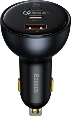Baseus nabíječka do auta 1x USB-A 2x USB-C Quick Charge 5 160W šedá + kabel USB-C