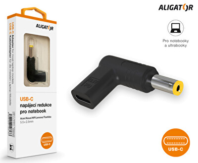 Aligator USB-C napájecí redukce 5,5x2,5 mm pro notebooky Acer/Asus/HP/Lenovo/Toshiba