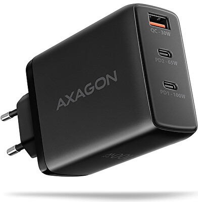 AXAGON ACU-DPQ100, GaN nabíječka do sítě 100W, 3x port (USB-A + dual USB-C), PD3.0/PPS/QC4+/Apple