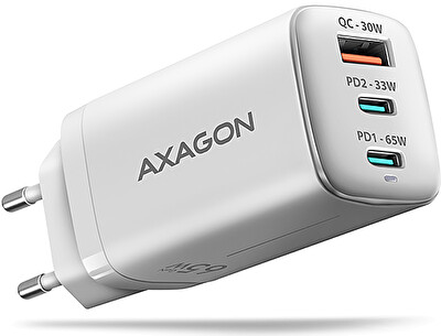 AXAGON ACU-DPQ65W, GaN nabíječka do sítě 65W, 3x port (USB-A + dual USB-C), PD3.0/QC4+/PPS/Apple