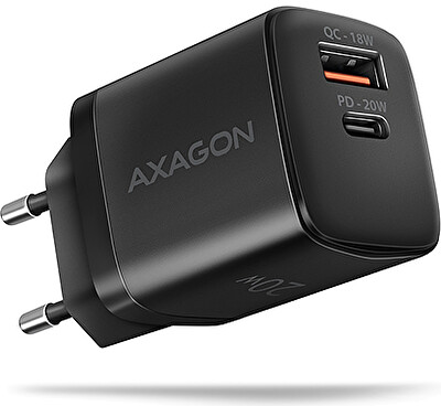 AXAGON ACU-PQ20, nabíječka do sítě 20W, 2x port (USB-A + USB-C), PD3.0/PPS/QC4+/AFC/Apple, černá
