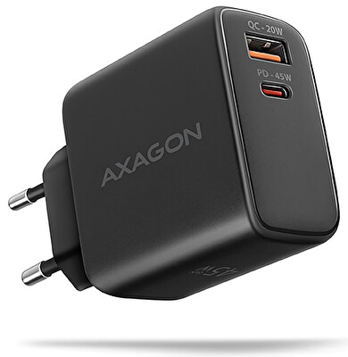 AXAGON ACU-PQ45 GaN nabíječka do sítě 45W, 2x port (USB-A + USB-C), PD3.0/PPS/QC4+/SFC 2.0/AFC/Apple