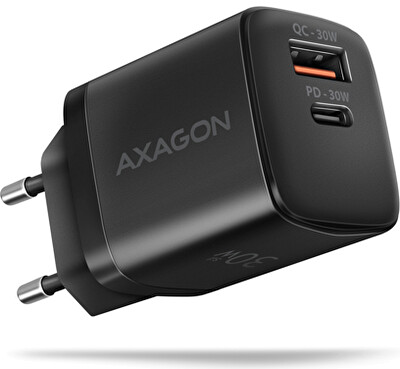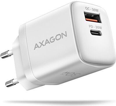 AXAGON ACU-PQ30W, Sil nabíječka do sítě 30W, 2x port (USB-A + USB-C), PD3.0/PPS/QC4+/SFC/AFC/Apple