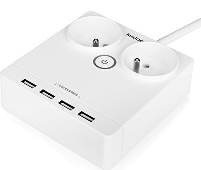 Nabíjecí stanice Huslog 12W 2xzásuvka, 4xUSB bílá