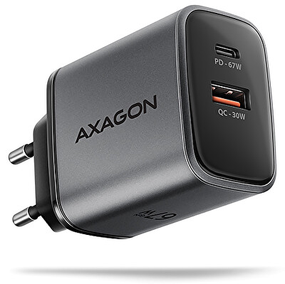 AXAGON ACU-PQ67, GaN nabíječka do sítě 67W, výstup USB-A + USB-C, PD3.0/PPS/QC4+/SFC2.0/Apple