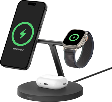 Belkin BOOST CHARGE PRO Qi2, 15W 3v1 stojan s Apple watch fast charge, černý