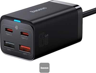 Baseus Rychlonabíječka do sítě GaN3, 2x USB-A, 2x USB-C 100W černá