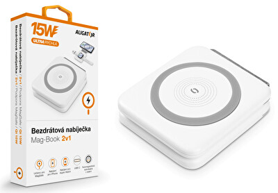 Bezdrátová nabíječka ALIGATOR Mag-Book 2v1, určeno pro MagSafe a nabíjení Apple Watch, 15W, bílá