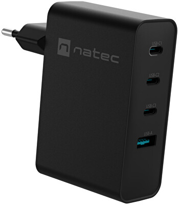 Univerzální USB nabíječka Natec GaN 100W, 3X USB-C, 1X USB-A, Černá