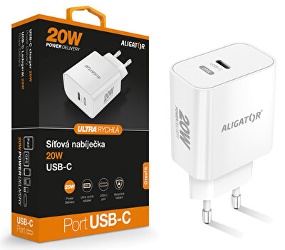 Chytrá síťová nabíječka ALIGATOR Power Delivery 20W, USB-C, bílá