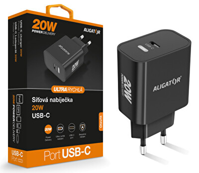 Chytrá síťová nabíječka ALIGATOR Power Delivery 20W, USB-C, černá