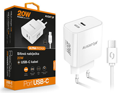 Chytrá síťová nabíječka ALIGATOR Power Delivery 20W, USB-C/USB-C kabel, bílá