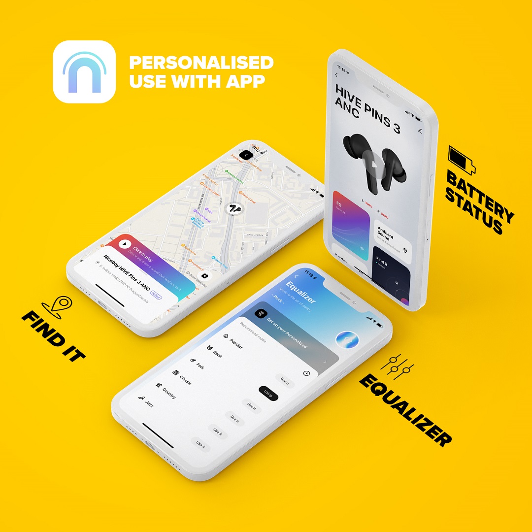 Niceboy HIVE Pins 3 ANC Skvělý zvuk bez ruchu z okolí Sluchátka Niceboy HIVE Pins 3 ANC nabídnou maximální zážitek z hudby s technologií pro potlačení ruchů z okolí. A pro maximální bezpečnost je tu pak mód Ambient, který k hudbě naopak zvuky z okolí přidá, takže budete stále v obraze, co se kolem vás děje. Sluchátka nabídnou navíc výdrž až 40 hodin a vlastní aplikaci Niceboy ION, se kterou dostáváte řadu zajímavých funkcí navíc. Zvuk bez ruchů s ANC nebo zvuk okolí s Ambient módem? Jak si budete přát Sluchátka mají tři režimy poslechu, mezi kterými si můžete vybírat podle toho, co zrovna potřebujete. Kromě standardního módu se skvělým zvukem ve všech frekvencích je tu režim s technologií Active Noise Cancellation, která potlačuje zvuky z okolí. Můžete se tak zcela ponořit do poslechu hudby či filmu, aniž by vás cokoliv zvenčí rušilo. S módem Ambient pak můžete pro zvýšení své bezpečnosti naopak zvuky z okolí přidat, což je ideální při běhání městem – uslyšíte jak svou hudbu, tak okolní provoz. Stabilní přenos zvuku bez prodlevy i pro sledování filmů a hraní her S pokročilým Bluetooth 5.3 se do sluchátek zvuk přenáší spolehlivě a bez prodlev. A co když chcete hrát hry nebo sledovat filmy a potřebujete, aby se zvuk přenášel stejně rychle jako obraz? Pro ně disponují sluchátka speciálním gaming módem pro ultrarychlý přenos zvuku bez zpoždění. Extra funkce s mobilní aplikací Chcete si nastavit zvuk podle svého gusta? S mobilní aplikací Niceboy ION je díky funkci ekvalizéru možné. A nejen to, s touto aplikací můžete vyhledat odložená sluchátka nebo zjistit, na kolik procent jsou sluchátka nabitá – uvidíte procenta pro každé sluchátko zvlášť. Provedení i pro horší podmínky Sluchátka mají stupeň krytí IPX4, takže jim nevadí ani déšť, ani pot. Podpora hlasových asistentů Sluchátka podporují ovládání pomocí hlasových asistentů Siri a Google Assistant. Nabíjení přes USB-C Sluchátka se nabíjejí pomocí rozšířeného USB-C kabelu, který je součástí balení. Rychlé nabití a skvělá celková výdrž až 40 hodin Stačí dát sluchátka na 5 minut do sítě a máte hned 1,5 hodiny energie k dispozici. A když je nabijete úplně, budou mít 10 hodin pro poslech či telefonování. Na cestách pak využijete nabíjecí pouzdro, se kterým máte neuvěřitelných 30 hodin energie navíc. Pohodlné dotykové ovládání přímo na sluchátkách Přímo na sluchátkách můžete ovládat přepínání mezi skladbami – stačí lehký dotyk. Stejně tak lze jejich pomocí přijmout či zamítnout telefonní hovor. Není tak potřeba vytahovat telefon z kapsy. Automatické párování Stačí jednou sluchátka připojit k telefonu a příště se už k zařízení připojí automaticky. Handsfree telefonní hovory Díky integrovanému mikrofonu lze přes sluchátka vyřizovat telefonní hovory, aniž by bylo potřeba vytáhnout telefon. Různé velikosti špuntů V balení jsou tři velikosti nástavců do uší, které pak zajistí pohodlí každému uchu. Obsah balení ? Sluchátka Niceboy HIVE Pins 3 ANC ? Nabíjecí box ? Náhradní nástavce do uší ? USB-C kabel ? Návod k obsluze Parametry ? BT: 5.3 ? Frekvenční pásmo: 2,4GHz ? Radiofrekvenční výkon: ? 2,5mW ? Profily BT: HFP, A2DP, AVRCP ? Podporované kodeky: AAC, SBC ? Stupeň krytí: IPX4 ? Dosah přenosu: 10m ? Reproduktor: 10mm ? Frekvence: 20Hz-20kHz ? Citlivost: 118 ± 1,5dB ? Doba přehrávání na jedno nabití: až 10 hodin ? Celková doba přehrávání: až 40 hodin ? Kapacita baterie sluchátek: 50mAh ? Kapacita baterie nabíjecího boxu: 400mAh ? Hlasoví asistenti: Siri a Google Assistant ? Multipoint párování: ANO