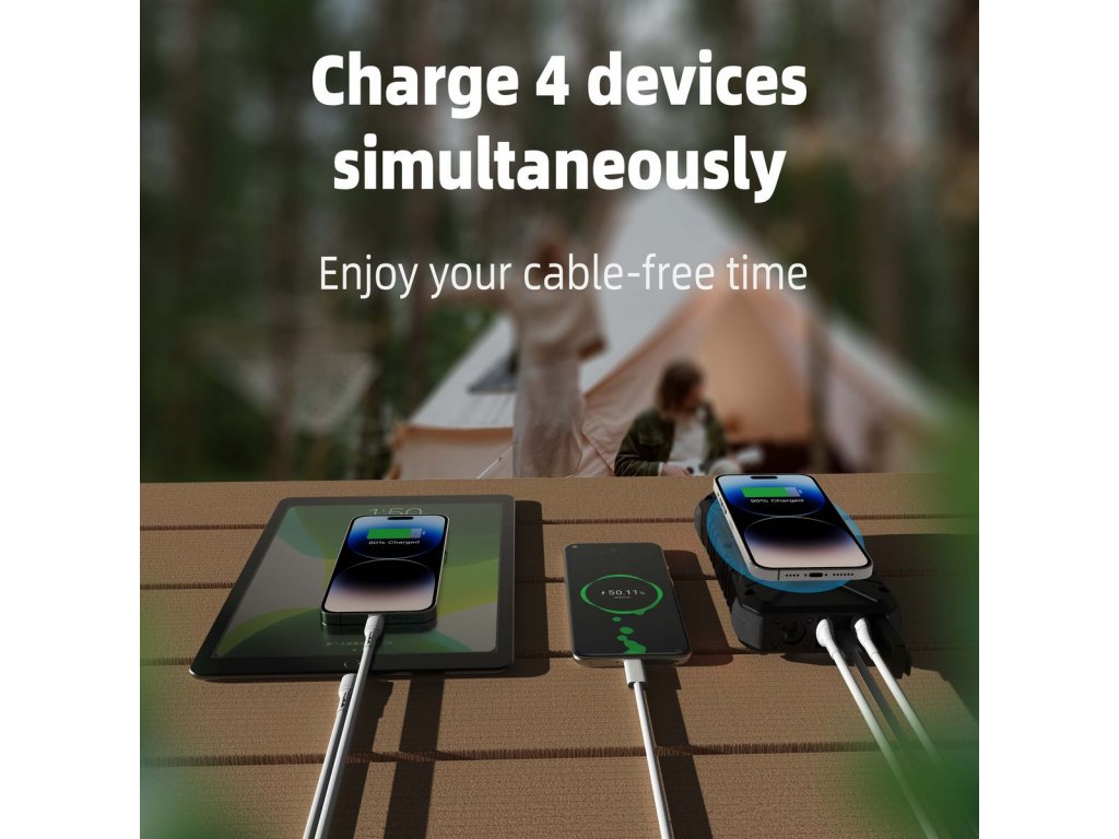 Díky podpoře rychlonabíjení PD30W nemusíte zbytečně dlouho čekat na plné nabití powerbanky a můžete rovnou vyrazit za dobrodružstvím. Rychlé nabíjení podporují také výstupní porty USB-A a USB-C. S tímto výkonným zdrojem energie budete mít vždy dostatek elektrického výkonu, abyste udrželi svá zařízení v provozu.?? Wireless bezdrátové nabíjení 15W se vám zase může hodit, pokud se ocitnete v situaci bez kabelu.