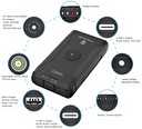 Pro pohodlné a univerzální použití je powerbanka vybavena širokou škálou výstupních konektorů, díky kterým snadno nabijete různé typy zařízení – od mobilních telefonů až po běžnou elektroniku.