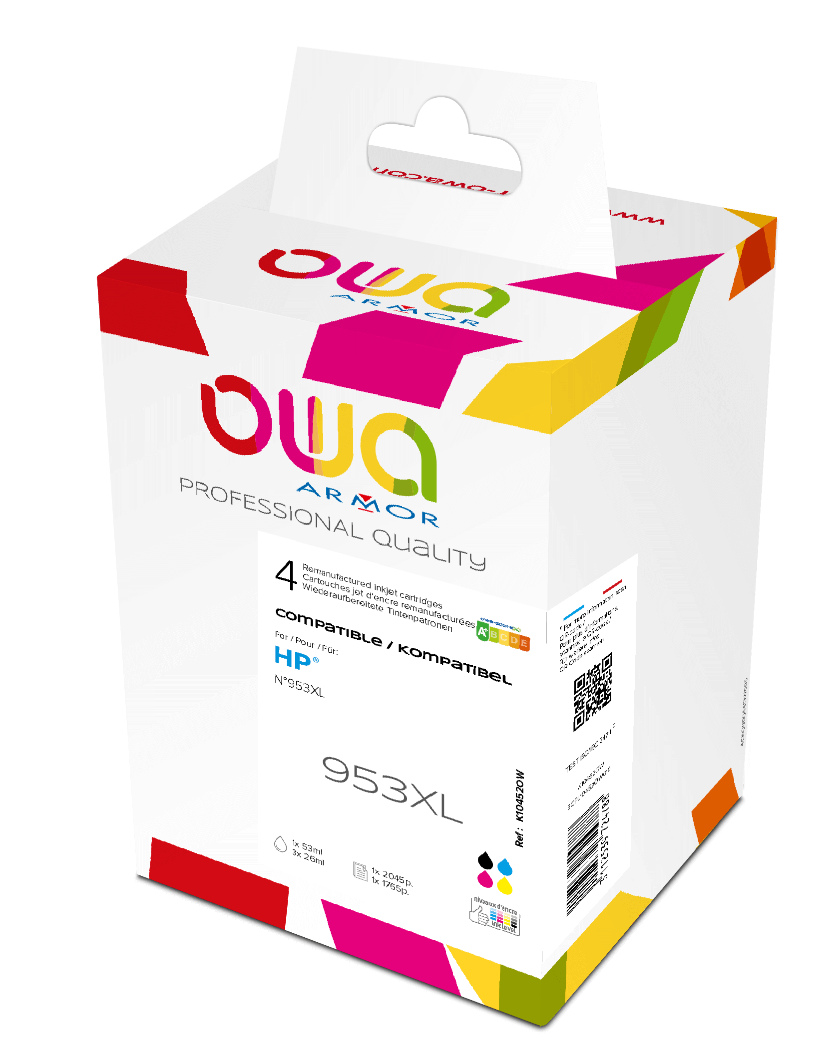 OWA Armor ink-jet kompatibilní s HP PACK 4 HP953XL BCMY,L0S70AE/F6U16AE/F6U17AE/F6U18AE,53ml/3x26ml/ 2045/3x1765 str.,černá/black+1C+1M+1Y