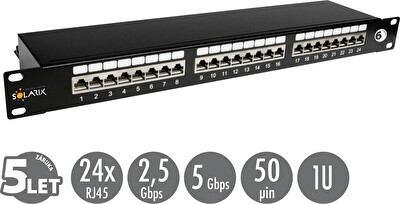 19" patch panel Solarix 24 x RJ45 CAT6 STP černý 1U SX24-6-STP-BK