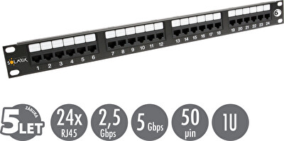 19" patch panel Solarix 24 x RJ45 CAT6 UTP 350 MHz černý 1U SX24-6-UTP-BK