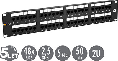 19" patch panel Solarix 48 x RJ45 CAT5E UTP 150 MHz černý 2U SX48-5E-UTP-BK