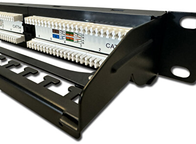 DATACOM Patch panel 19" UTP 24 port CAT5E DUAL 1U BK (4x6p) vyvazovací lišta