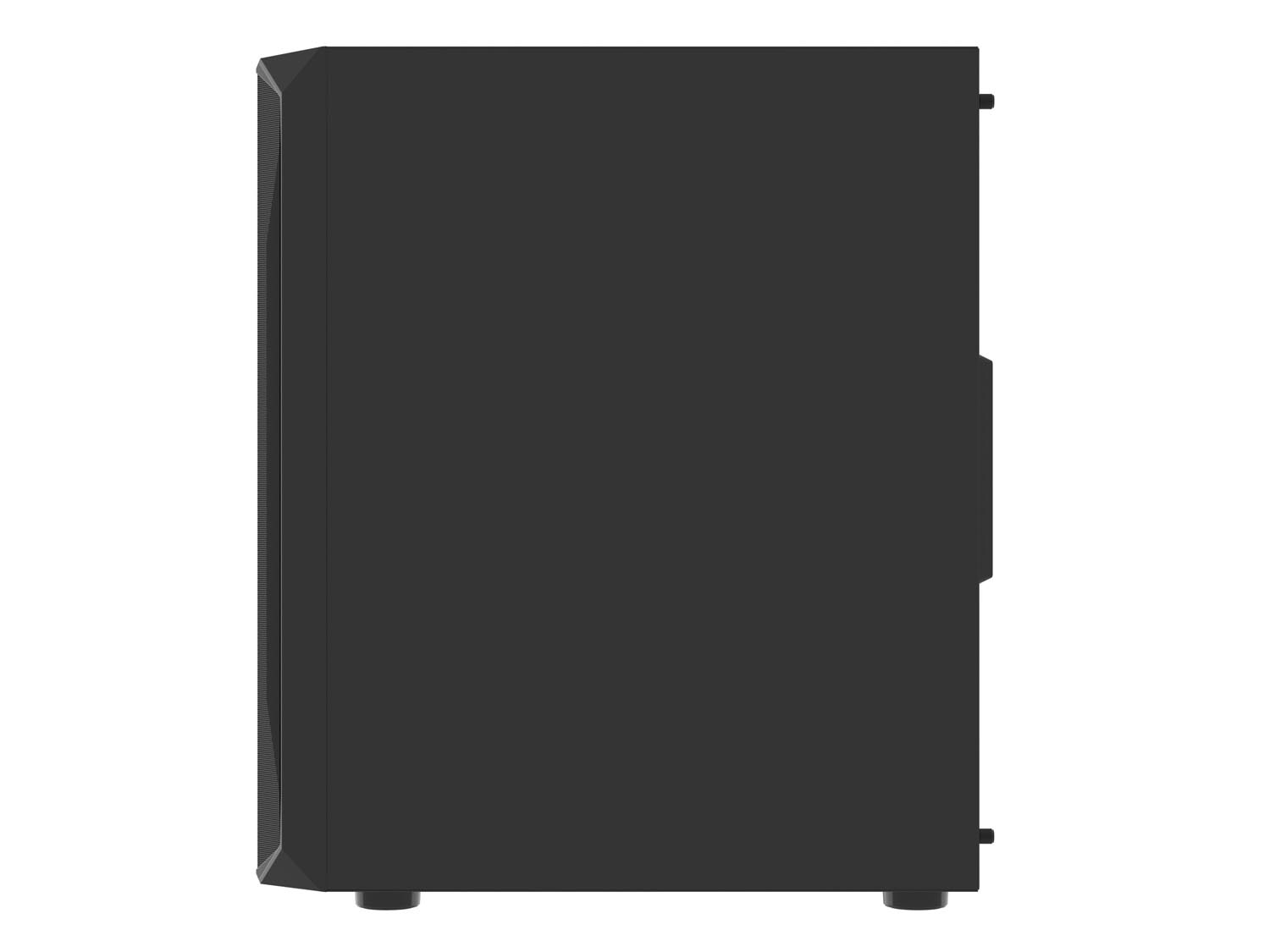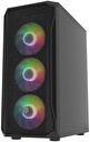 Futuristický geometrický tvar se bude líbit jak hardcore hráčům, tak i těm, kteří dávají přednost decentnějšímu designu. Levý boční panel z tvrzeného skla je příležitostí k odhalení vnitřku skříně a výkonných komponent ukrytých uvnitř - také s RGB, zejména proto, že instalované ventilátory jsou předsvětlené.