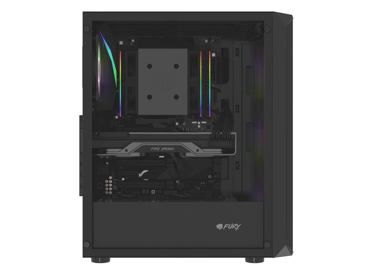 Podívejte se na Fury Shobo SH4F RGB - chytrou počítačovou skříň s účinným chlazením a RGB podsvícením. Skříň Shobo SH4F RGB je kompatibilní se základními deskami ATX a systémy vodního chlazení (AIO 360/280/240/140/120), je vybavena až 4 ventilátory RGB, síťovanou přední částí a ochranou proti prachu. Ať je světlo!
