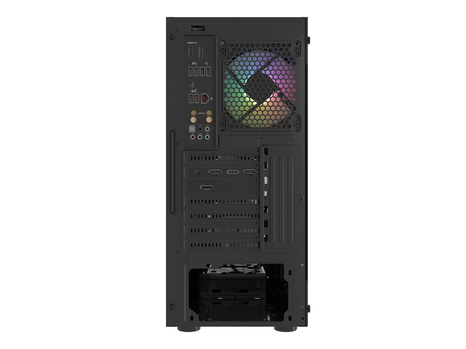 Postavte zvíře, ne počítač! Díky 4 výkonným 120mm ventilátorům RGB (jeden vzadu, tři vpředu) a otevřené horní části a síťované přední části zajišťuje Shobo SH4F RGB neomezené proudění vzduchu skříní.