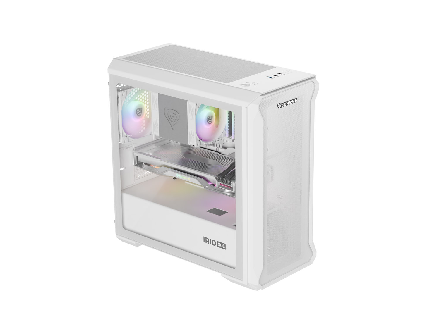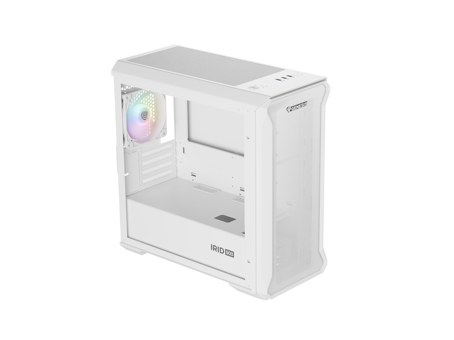 Počítačová skříň Genesis IRID 503 ARGB LITE/Mini Tower/Transpar./Bílá